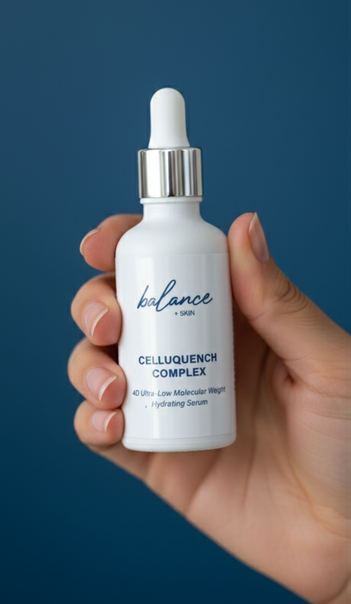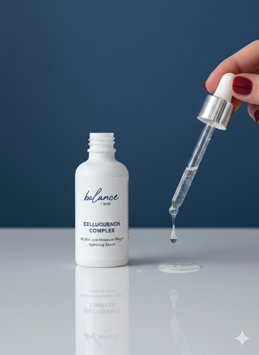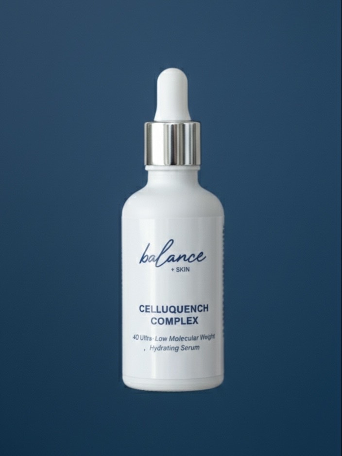 CelluQuench Complex is a 4D replenishing hydrating serum formulated with ultra-low molecular weight hyaluronic acid to deliver immediate and long-lasting hydration. Designed to penetrate deeply into the skin, this advanced complex provides up to 72-hour hydration while improving cumulative moisture levels with continued use.